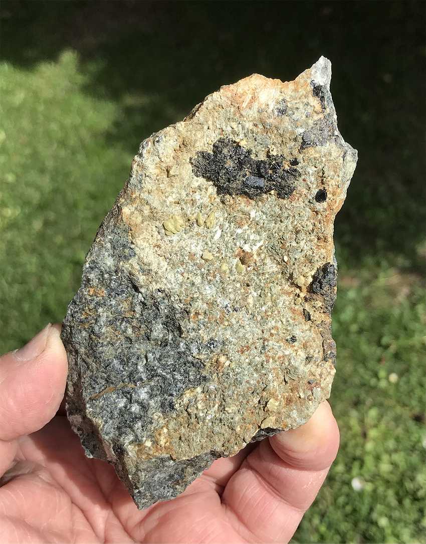 San Piero, Isola Elba, Livorno, Italy - A classic specimen from the pegmatite areas of San Piero.This specimen has an open cavity with a some large orthoclase crystals up to almopst 3 cm on the edge.…