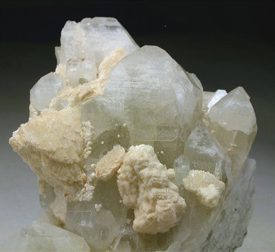 SAN PIERO, ISOLA ELBA, LIVORNO, ITALY - Typical fragment of a pegmatite pocket from Isola Elba., Italy. The specimen has several terminated quartz crystals up to 2 cm in size with a lot of cluster of…