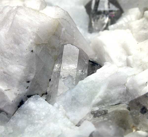 Grotta d'Oggi, San Piero, Isola Elba, Livorno, Italy - An old specimen from a german collection. The rock hosts a terminated goshenite beryl 1 cm in size which is nicely nested close to a feldspar. A classic from the old locality of grotta d'Oggi ! overall size is 6x4.5x3.5 cm. Old label also from Krantz collection.