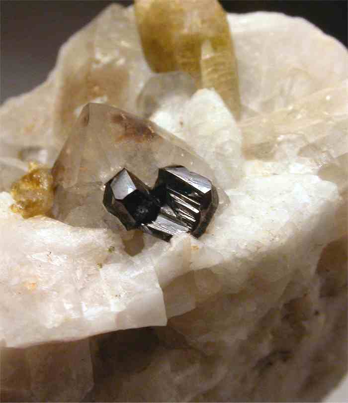 San Piero, Isola Elba, Livorno, Italy - A super bright cluster of cassiterite crystals ! From my personal collection. The cassiterites are undamaged and form a cluster of 0.4 cm wide ! Great shapes and unique crystals ! Very esthetic for the specied from thi locality. Overall size is 3.2x2.6x1.6 cm