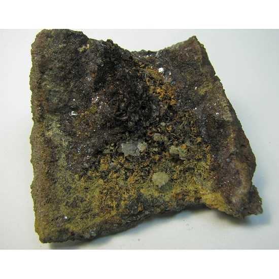 Valle Giove mine, Rio Marina, Isola Elba, Livorno, Italy - This is classic that Elba lovers know very well ! There are some 0.4 cm fluorite crystals on the pyrite and hematite matrix of this specimen. From an old collection. Overall size 6x5.5x2.5 cm