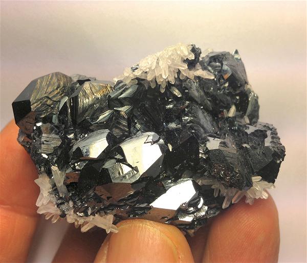 Bacino mine, Rio Marina, Isola Elba, Livorno, Italy - A super rich specimen from Isola Elba, Italy. This rock hosts a great abundance of terminated bright metallic hematite crystals ! This is a pure classic for any collection ! The hematites are up to 1.5 cm wide and show a great brightness ! there also a lot of 0.3-0.5 cm quartz crystals that emerge among the hematites. A superb classic of 5.5x3.5x3.5 cm