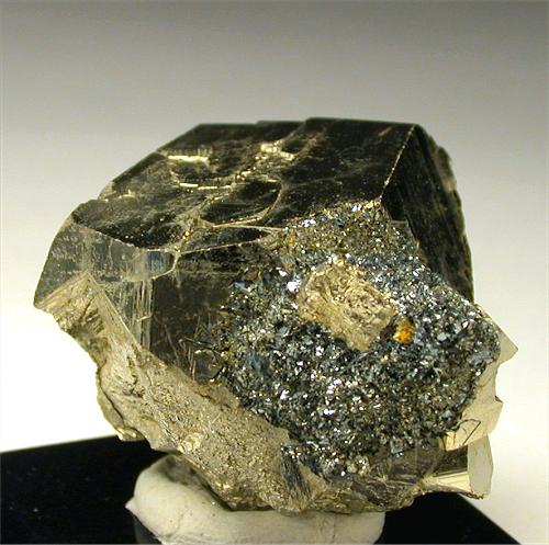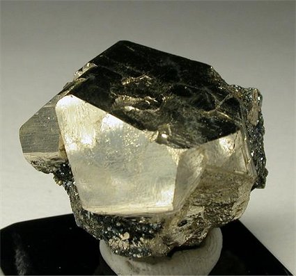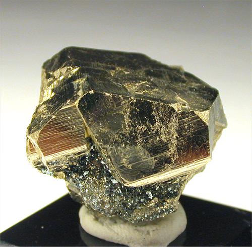 Valle Giove mine, Rio Marina, Isola Elba, Livorno, Italy - Bright pyrite pentadodechahedron crystal of 2 cm on the edge and 3x2.4 cm in size. There is a small amount of hematite matrix on one side and some other small pyrite crystals. Nice !