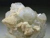 SAN PIERO, ISOLA ELBA, LIVORNO, ITALY - Typical fragment of a pegmatite pocket from Isola Elba., Italy. The specimen has several terminated quartz crystals up to 2 cm in size with a lot of cluster of white albite. Overall size is 5x4x3.5 cm