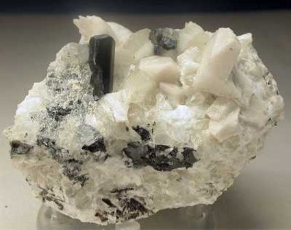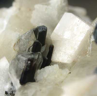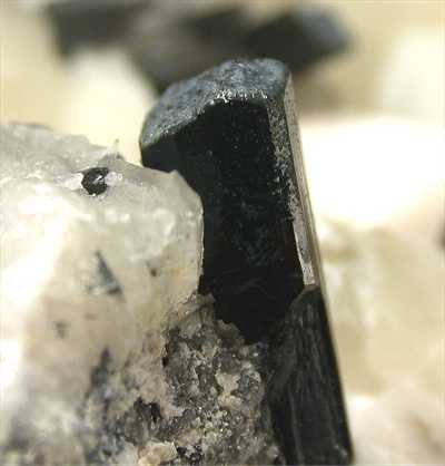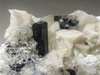 SAN PIERO, ISOLA ELBA, ITALY - Among several orthoclase crystals there are various schorl crystals. The largest is 1.4 cm in size. There are some others up to 0.5 cm. The feldpars are up to 1-1.5 cm on the edge. Overall size is 7x5x5 cm.