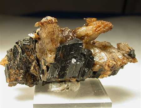 MONTE FICO, RIO MARINA, ISOLA ELBA, LIVORNO, ITALY - This specimen shows several ilvaite crystals nested among quartz crystals. The ilvites are up to 2.5 cm in size with perfect terminations and I…