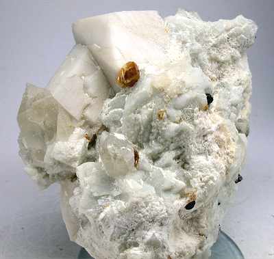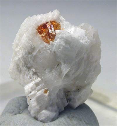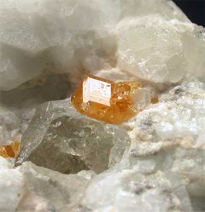 SAN PIERO, ISOLA ELBA, ITALY - The orange color of these spessartines are well visible on the white albite and feldspar matrix. The spessartines are up to 0.5 cm in size. Overall size is 5.5x5x4 cm.