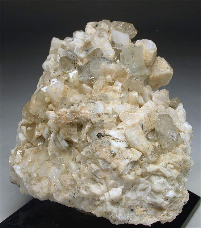 FORCIONI DIKE, SANT ILARIO, ISOLA ELBA, ITALY - Colorless beryls (goshenite) are nested among small feldspars on this specimen from the Forcioni area. Their size is up to 0.8 cm. Overall size is…