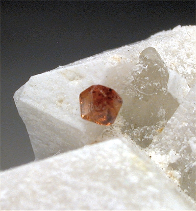 San Piero, Isola Elba, Livorno, Italy - Single spessartine crystal on small matrix. The crystal is 0.3 cm in size. Overall size is 1.3x1.2x1 cm.