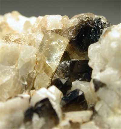 GROTTA D'OGGI, SAN PIERO ISOLA ELBA, LIVORNO, ITALY - The combination of black quartz and beryl is typical at Grotta d'Oggi quarry. This specimen hosts a nicely terminated waterclear beryl of 0.6 cm…